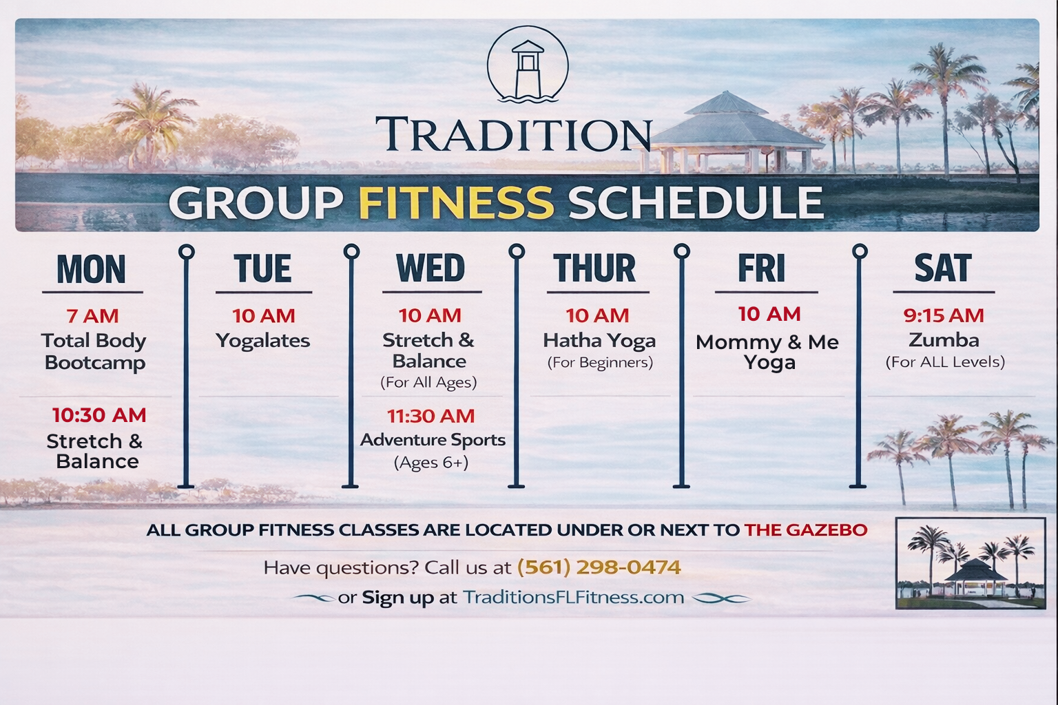 All classes available at Tradition. Check the monthly calendar above for specific days and times.